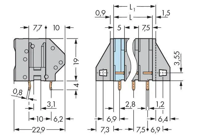 монтаж на печатную плату, пружинный зажим