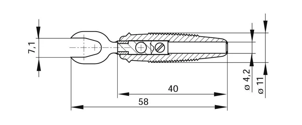 Никелированный кабельный наконечник SKS Hirschmann KB 3 с ударопрочной гибкой изолирующей втулкой с поперечным отверстием диаметром 4 мм. Подходит для соединительных болтов диаметром от 4 мм до 7 мм.