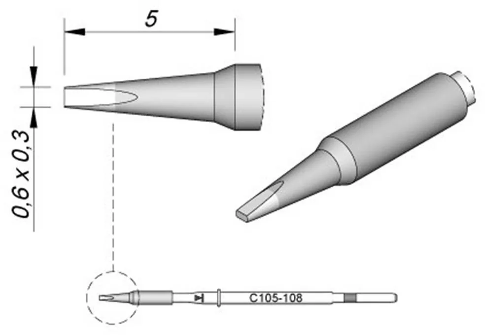 Паяльные наконечники серии C115 - самые маленькие и самые тонкие наконечники JBC. Они предназначены для высокоточной пайки и ремонта очень маленьких компонентов - даже под микроскопом.