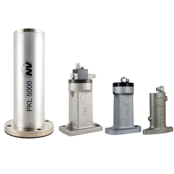 Усиление удара пневматических ударных вибраторов Netter Vibration серии PKL от 0,43 кг до 17,5 кг, рабочее давление от 4 бар до 6 бар, совместимая толщина стен от 1 мм до более 10 мм.
